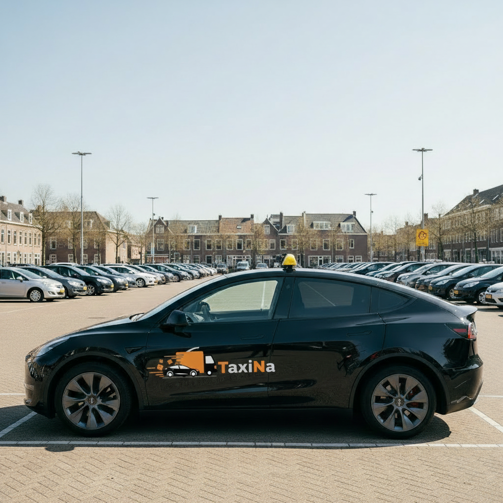 Taxina blends taxi rides and parcel delivery seamlessly – powered by electric Tesla taxis and efficient cargo vans for "Your Paket on Time.